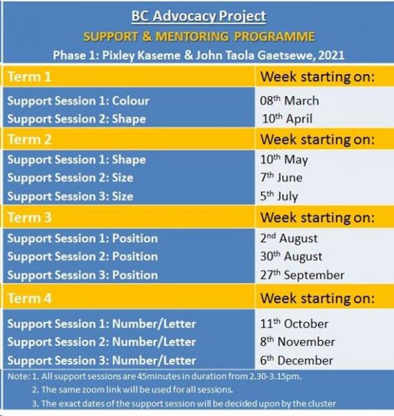 The BC Project Team will be providing virtual support sessions to the project teachers in the Pixely Ka Seme and John Taolo Gaetsewe Districts.