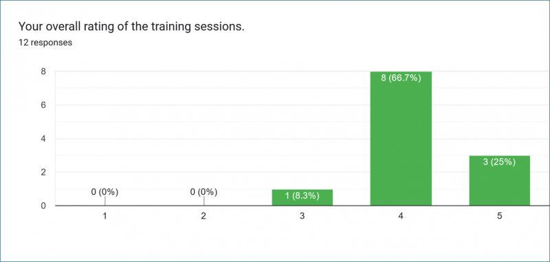 92% of teachers found the content of the training very to highly beneficial, while one teacher rated the training average.