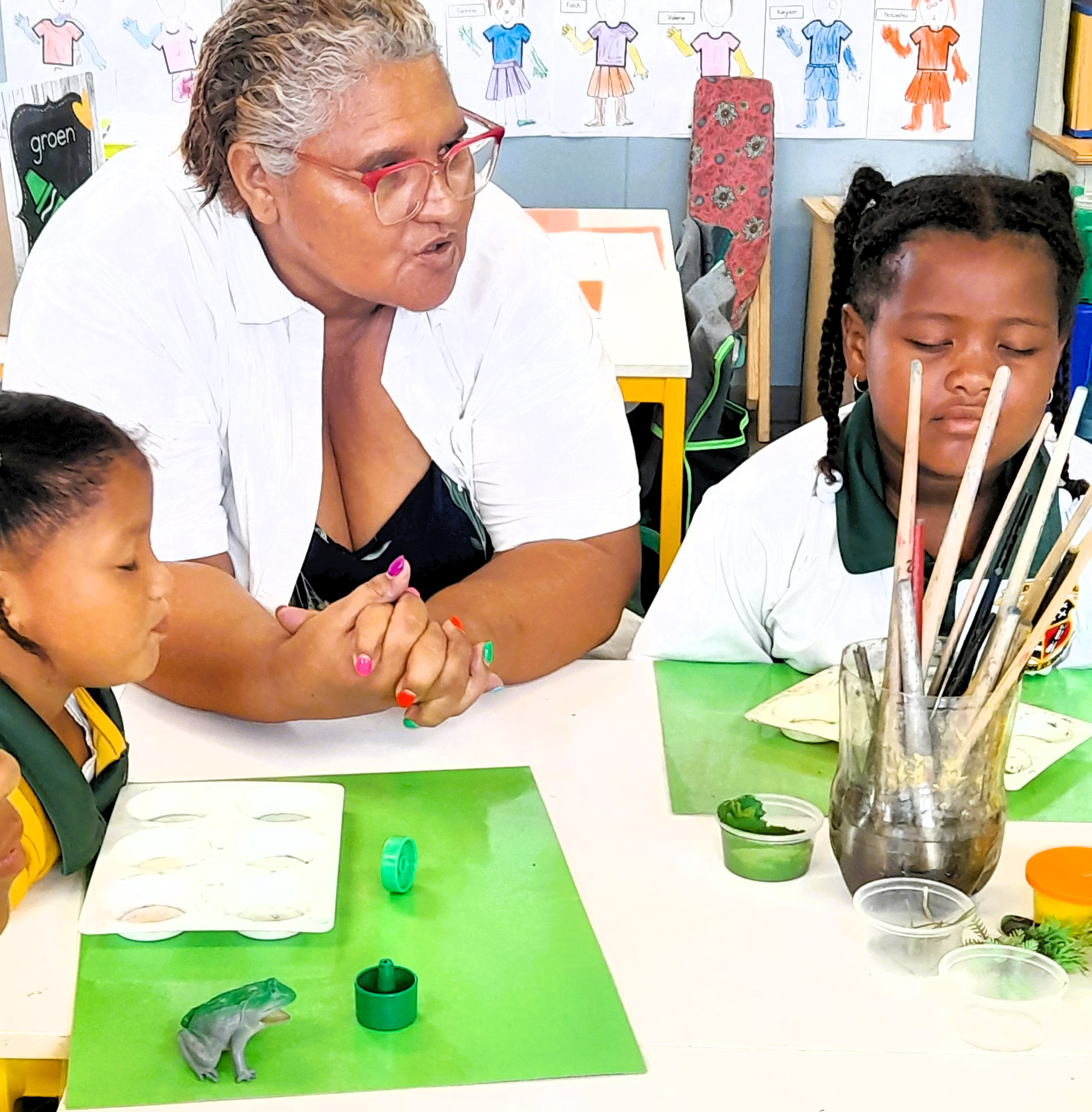 Across the schools, we saw real commitment. Teachers are now running at least one focused intervention group, while Grade R teachers are extending the programme to their full classes. In several classrooms, sessions were well prepared, learners were engaged, and children confidently recalled prior learning — even making independent connections such as identifying light and dark shades of colour. It was encouraging to see learners becoming more verbal and willing to participate.
