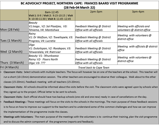 Northern Cape Project (Phase 2+2a | Frances Baard): Support and Mentoring Visit, Feb 2022