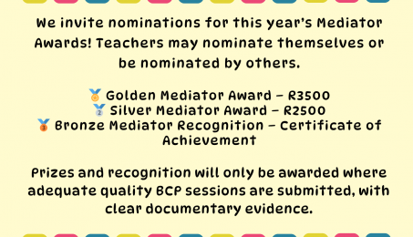 The BC Mediator Awards are designed to recognise teachers who have shown creativity and dedication in implementation.