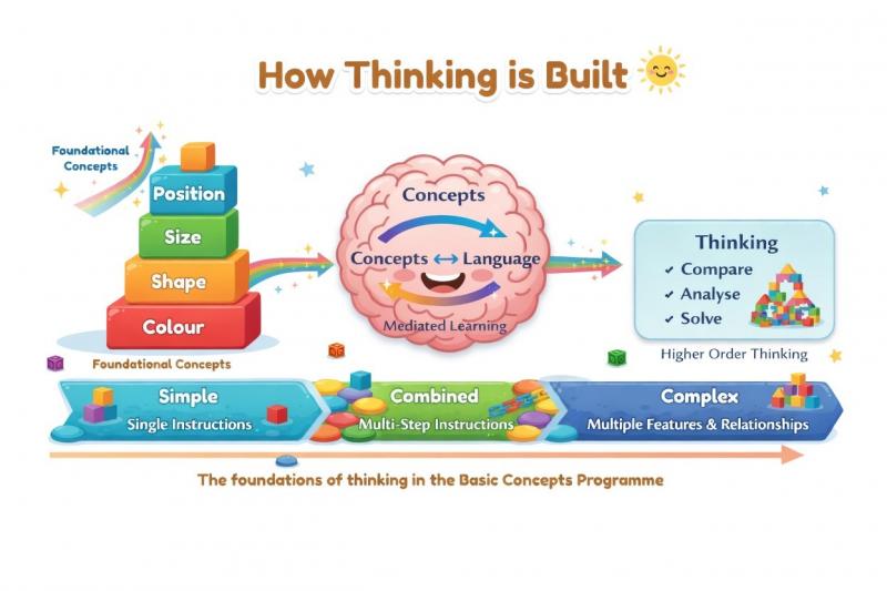 The Basic Concepts Programme is built on a solid conceptual-linguistic model that moves children from: